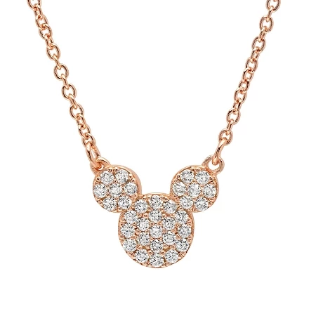 Mickey’s iconic likeness is formed in handset flawless cubic zirconia on