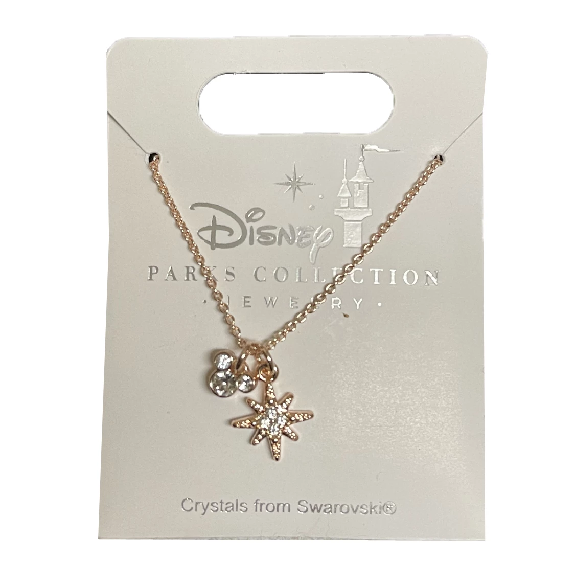This gorgeous Rose Gold Swarovski Necklace makes a nice Elegant addition to your jewelry collection. Features a Mickey Mouse Icon with a Star charm.Β
